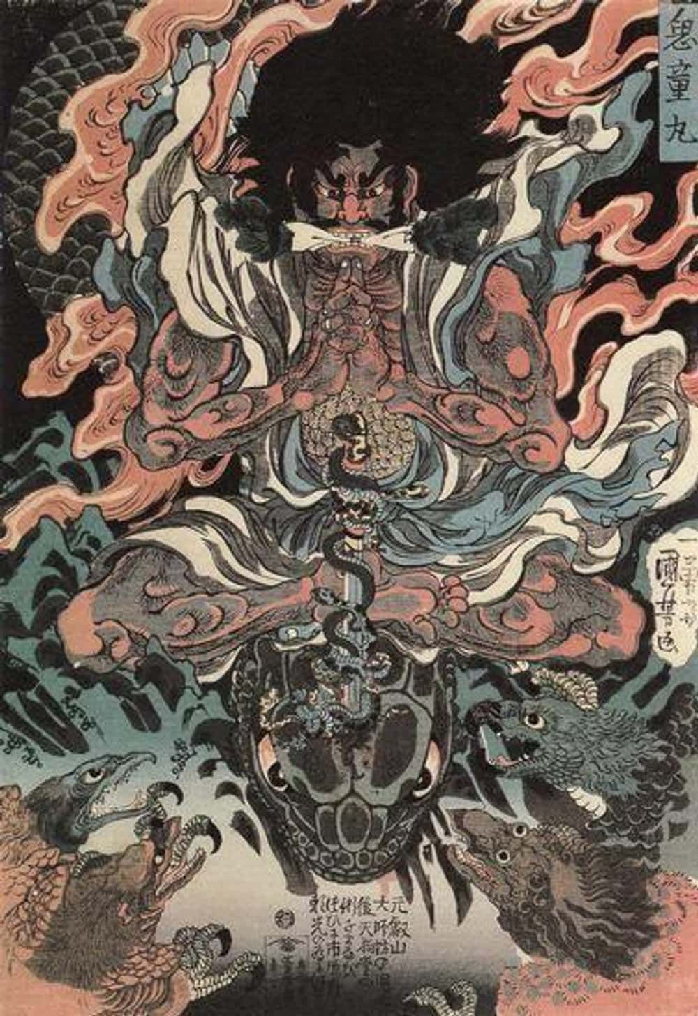 Its eyes blood-red, fierce, nose furrowed, fangs bared, mighty forearms gripping tightly, sharp claws digging even past the flesh and into the bone.